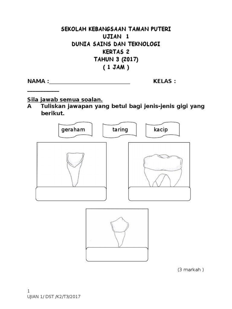Live worksheets Malay Sains Gigi Sains tahun 3 manusia. Koleksi Ujian Akhir Tahun 2020 Tahun 3 KSSR Semakan. Koleksi Soalan-soalan Objektif tahun 3 2.